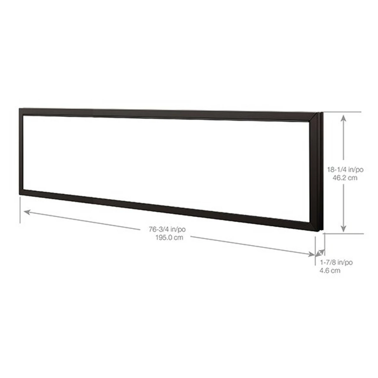 - H 18 1 ⁄ 4 in x W 76 3 ⁄ 4 in x D 1 7 ⁄ 8 in