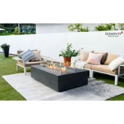 The Positano is the new and improved rectangular fire table featured on the Elementi Plus line. The body is handcrafted to precision using glass-fiber reinforced concrete, which is both lightweight and durable against the elements. The burner is constructed of 16-gauge 304 stainless steel that provides a generous BTU output of 60,000, the warmth of the flames can be felt across the patio or deck. The Positano comes in a bold dark gray color that will surely catch the attention of your guests!