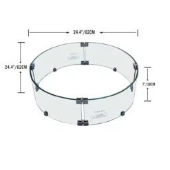 AMS Fire Pit Table Round Glass Wind Guard – 1/4″ Thick Glass – Fire Flame Guard