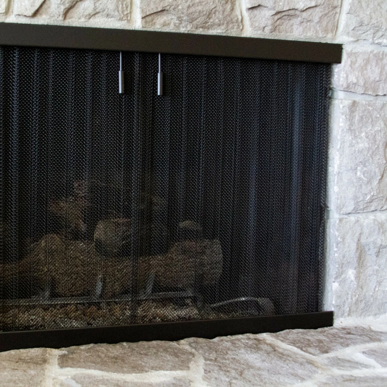 The heavy quarter-inch 19-gauge wire curtain screens with 40% fullness will act as a barrier between the fireplace and the living room giving you protection from dangerous sparks and ash. This fireplace screen is a recessed screen and mounts flush with your fireplace. Also includes pull chain operation option.