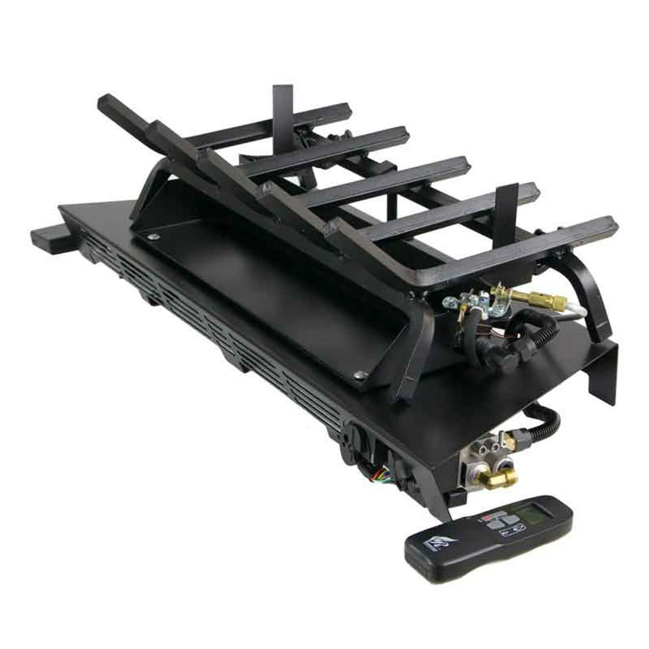 The Rasmussen Flaming Ember XTRA Vanisher ANSI Vented Burner is a flat pan with three burner tubes, creating a fire that sets deep into your fireplace. With the Valve Vanisher design it also raises the burner by 2 5/8″, but eliminate the big black box that holds the ignition.