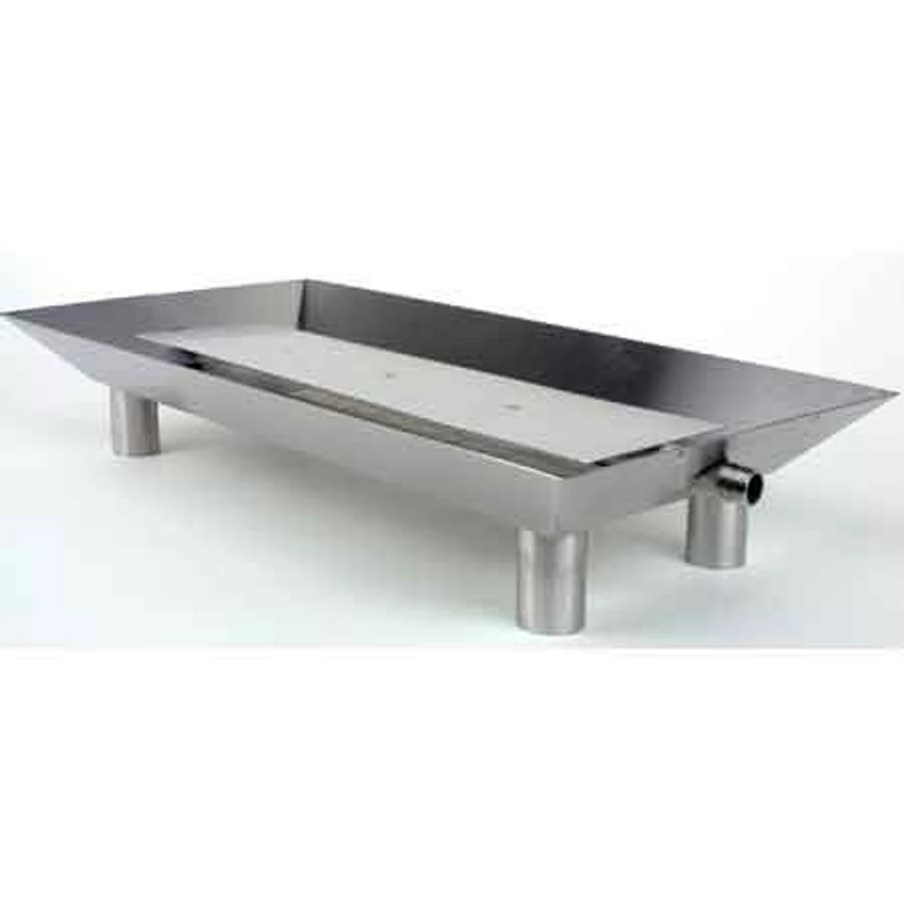 “CS” Burner – Rectangular-shaped full-pan burner. Single pipe with baffle to distribute gas. Logs, FireBalls, etc. sit in the pan – no grate is used. 4.25” high with the legs, 2” high without the legs. Use in Single, Double and Multi-sided fireplaces.